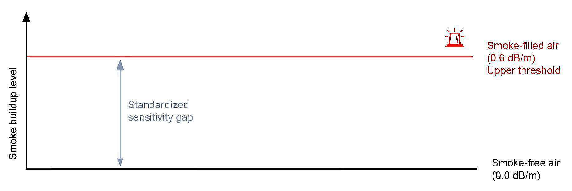 Rookvrije lucht heeft een meetwaarde van 0,0 dB/m. Sommige certificatie-instellingen (bijv. VdS) hanteren een bovengrenswaarde van 0,6 dB/m. De afstand tussen deze twee waarden is algemeen bekend als de gevoeligheidskloof.