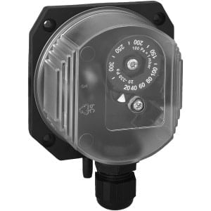 De schakeldruk kan zonder manometer worden aangepast met behulp van een geschaalde instelknop. Hiervoor zijn verschillende uitvoeringen met overlappende instelbereiken tussen 0,2 mbar en 50 mbar beschikbaar. Standaard is de drukschakelaar voorzien van een transparant deksel met beschermingsklasse IP54.