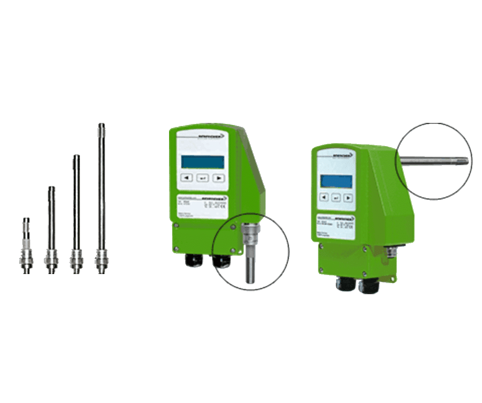 | inPro-CTF-… | Temperatuur- en vochtopnemer | -40…+125 ºC */0…100% rH | 50|100|150|200 mm | Stekker en contactdoos |