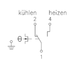 De capillaire sensor is over de volledige lengte actief. Zodra de waarde gedetecteerd door de capillair sensor over zijn lengte (30 cm bij varianten van 6 m of 60 cm bij varianten van 12 m), onder de ingestelde ingestelde waarde komt, worden het contact 1-4 gesloten en het contact 1-2 gaat open.