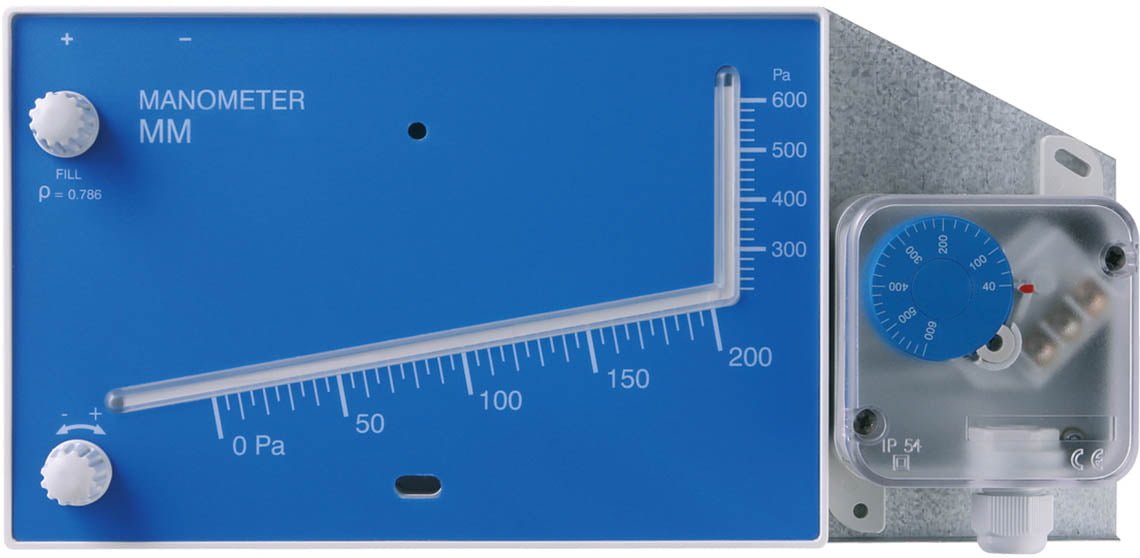 Drukverschil-manometer lucht en niet-ontvlambare / niet-agressieve gassen, max. 200 kPavloeistofindicator drukverschil 0..+600 Pa | IP54 volgens DIN EN 60529