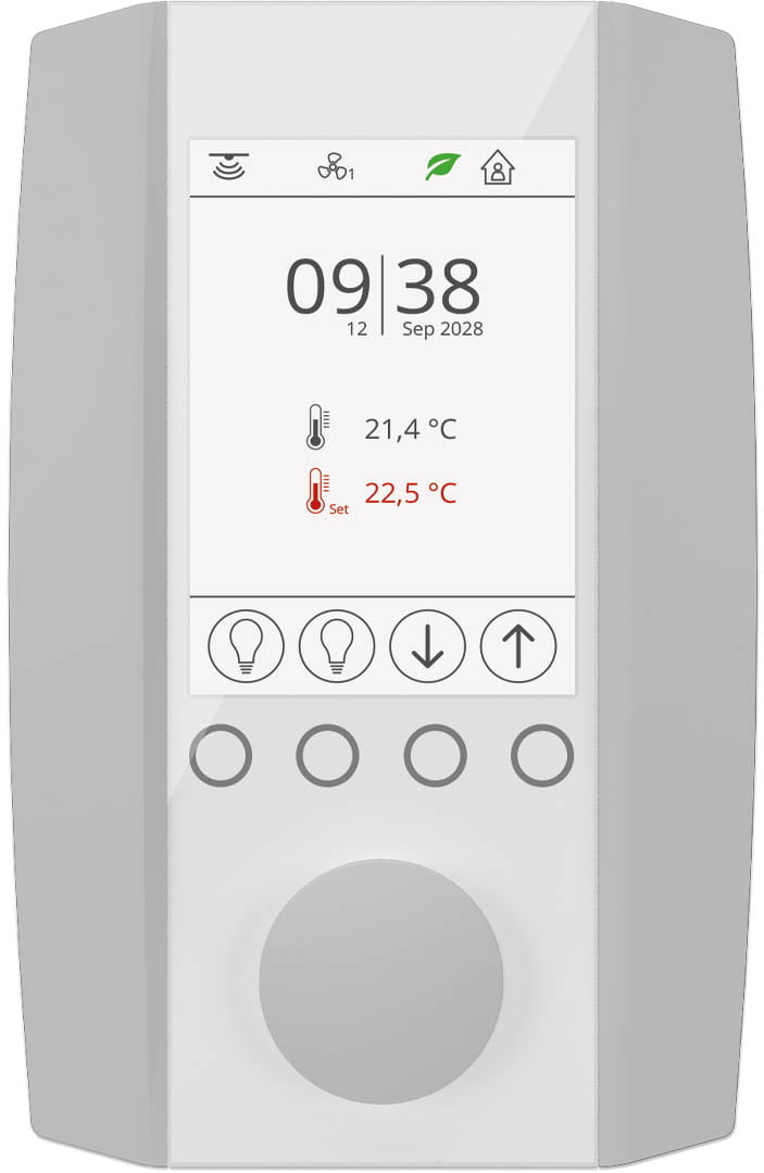 temperatuurregel, ventilatorregel, change-over, raam-/deurbewaking, aanwezigheid, verlichting, jaloezieën/luiken